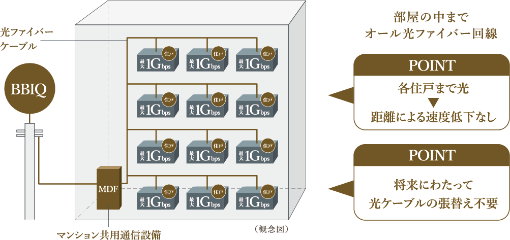 各住戸が光ファイバー回線で、高速・高品質のインターネット環境を実現します。
